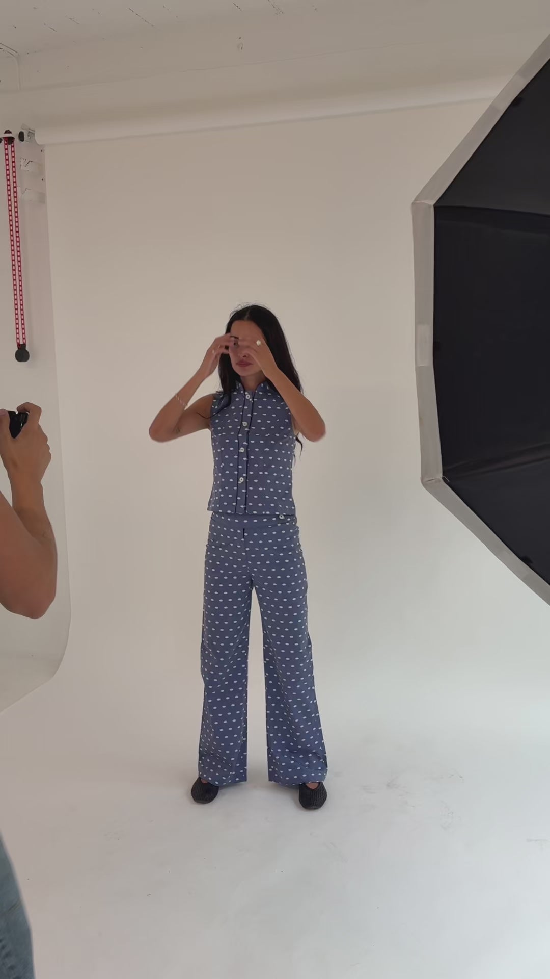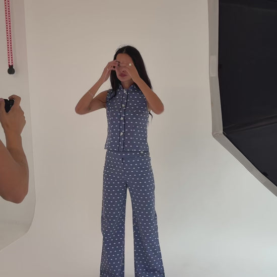 - Vintage blue with white polka dots
